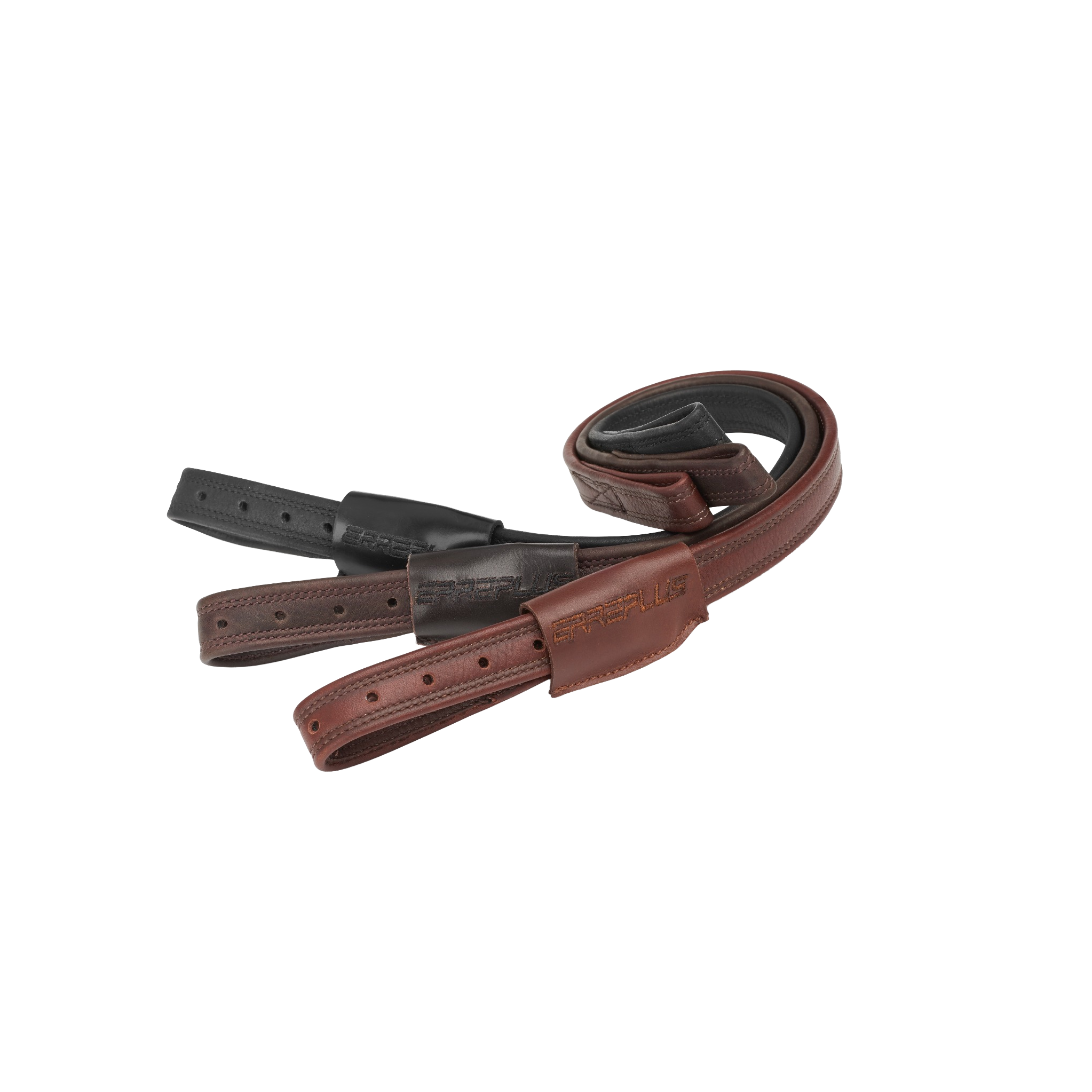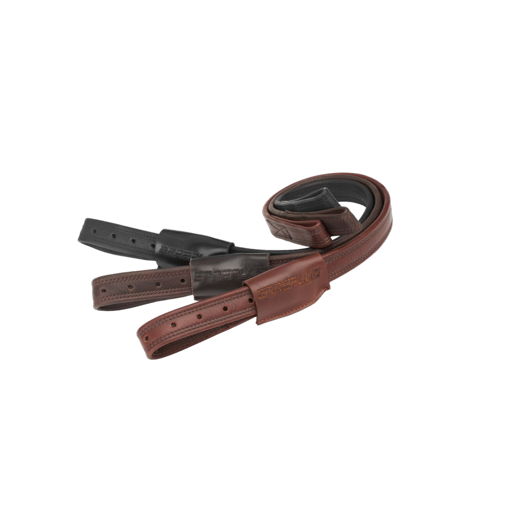 De riemen hebben een 3-laagse structuur van kalfsleer – webbing – kalfsleer, wat zorgt voor extra stevigheid en voorkomt uitrekken. Ze zijn bovendien speciaal vervaardigd als linker- en rechterriem; let er dus altijd op dat je de juiste positie aanhoudt bij gebruik.